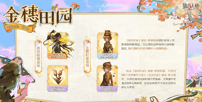 各位玩第五人格的小伙伴们有福了,因为期待已久的“金穗田园”活动终于要来啦!在这次活动中不仅有超多好玩的任务,而且还有各种丰厚的奖励等我们领取噢。这些奖励五花八门的,有惊艳的返场时装,甚至还有限定装饰和节日专属互动内容。那在第五人格游戏的金穗田园活动中到底有哪些福利呢?第五人格的小伙伴们只需要观看了以下活动详情介绍就知晓啦。