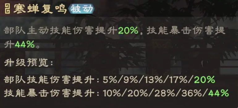 3.“寒蝉”技能可大幅提升队伍的各种伤害,这使得貂蝉所在的队伍在整体输出能力上得到质的飞跃。无论是兵刃伤害、谋略伤害还是其他类型的伤害,都能在“寒蝉”的作用下得到增强。假设我方队伍中有擅长兵刃输出的武将和擅长谋略输出的武将,貂蝉的“寒蝉”技能能够让这两类武将的输出同时得到提升,使队伍的输出更加多元化且具有威力。在攻打关卡或者与其他玩家对战时,更高的输出意味着能够更快地击败敌人,获取胜利。