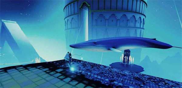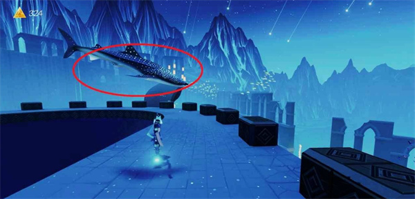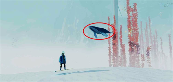蓝鲸:在岛顶激活水源点后,区域出现蓝鲸。可借助周边海草重新跳至高处靠近蓝鲸。