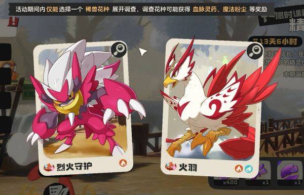 烈钻鸟之所以会稀有,是因为它没办法直接在世界里抓取,而是要等开放对应的火系精灵调查活动后,各位才能获得捕捉烈钻鸟的机会。具体的捕捉方法如下,当精灵调查开启后,各位可在两种可进行调查的精灵中选择火羽(烈钻鸟最终形态),再去找老师走完活动任务,就能正式开启精灵调查了。此后,火羽的稀兽花种会被标注在地图上,各位根据指引来到它的所在地,交互祈愿后稀兽花种就会出现。