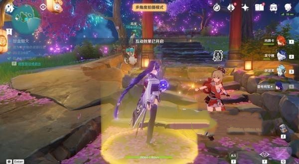 3.将游戏内时间调整至20至24点,切换到一名稻妻角色或旅行者,与宵宫对话开始留影。选择任意姿势,注意查看界面左侧是否符合留影要求,确认无误后,按下小道具快捷键即可成功留影。留影时点击右下角的互动按钮还可以触发小彩蛋哦。