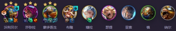 - 组合羁绊:1魄罗之心、1荆棘之兴、4假面、4刀锋、2斗魂、2护卫、2主宰、1大宗师。