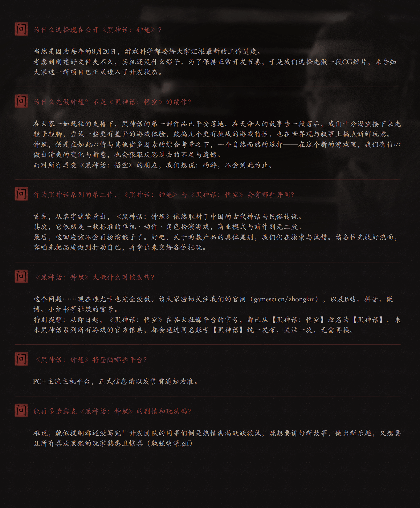 3.黑神话钟馗的公布,标志着游戏科学从“西游题材”迈向了更广阔的中国神话体系。与《黑神话:悟空》不同,黑神话钟馗从神鬼聊斋题材切入,进一步丰富了黑神话宇宙的文化内涵与故事维度。两者相互补充,让整个宇宙更加多元、立体。未来,游戏科学可能会继续推出更多以中国神话人物为主题的游戏,通过不同的故事线逐步揭开同一宇宙下的终极谜题。