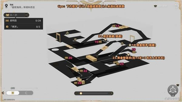 - 可见战利品:28个,既计入地图成就数,也计入米游社成就数。
