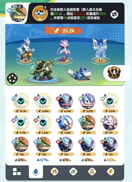 这套阵容的搭配思路十分清晰,全队紧密围绕水灵儿的攻速增益展开循环作战,通过高频的普攻来不断地叠加伤害与护盾,当然在实际游戏中,玩家还可以根据不同的战斗场景和对手情况对阵容进行灵活变阵,例如在火转水变阵中,如果玩家已经培养了火猴子,那么可以利用火猴子普攻叠暴击的独特机制,将其与水灵儿的攻速增益相结合,替换掉霸浪蛟,从而进一步提升队伍的爆发能力。