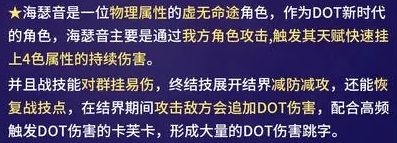 海瑟音是DOT队的强力补强角色,适合已有DOT队基础的玩家抽取。若未组建DOT队,建议优先考虑其他通用性强的角色。