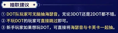 非DOT队玩家:不建议抽。海瑟音的技能机制与非DOT队的适配性较差,抽取价值有限,除非对角色有特殊喜好。