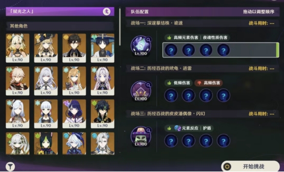 第三间(皮皮潘偶像):推荐伊涅芙感电队或传统感电阵容,快速破盾+高爆发。