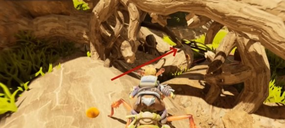 2、前往地图所标识的特定位置,并顺着粗壮的树根往内部深入探索。