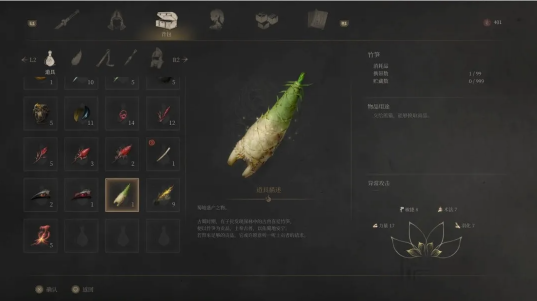 3、笋精的唯一用途是在熊猫NPC处兑换物品,熊猫的位置和售卖物品随章节变化。