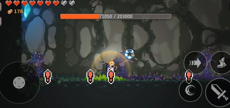 4.躲避藤刺攻击:对于横向荆藤以及从地底召唤出的荆藤,玩家可通过灵活移动和跳跃躲避。全图技能和蓄力技能,运用二段跳轻松避开,其他技能依靠快速冲刺与跳跃操作化解危机。