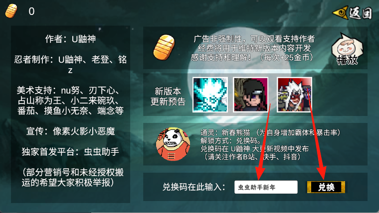 - 兑换码:虫虫助手新年