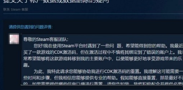 通过Steam客服申诉:若符合退款条件但退款申请未通过,或者因CDK等特殊情况导致不能退款(如CDK绑定错误账户),可以通过Steam客服通路解决。打开Steam客户端,点击左上角的“帮助”菜单,选择“客服”;然后在“客服”页面中选择“我的账户”,下滑页面找到“您Steam账户的相关数据”选项并进入,继续向下滑动找到“联系Steam客服”按钮,点击后向客服说明情况。如果是CDK问题,可告知客服CDK绑定错误账户,希望进行重置,并附上CDK。若是其他问题,需详细描述,如游戏存在严重Bug导致无法正常游玩等。