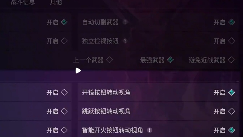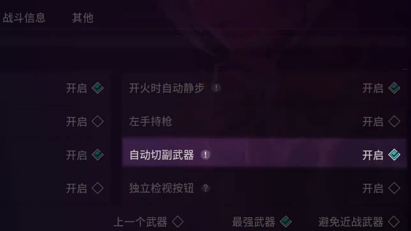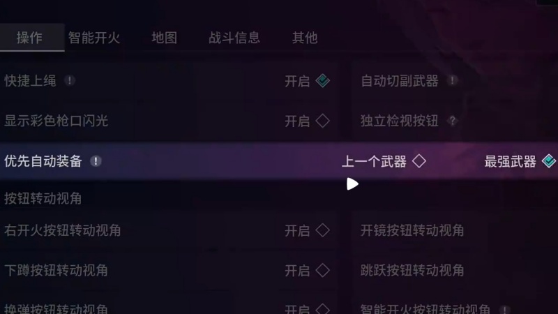 2.辅助功能:开“辅助瞄准”“快速上绳”提效率,关“自动切换武器”防误操作。