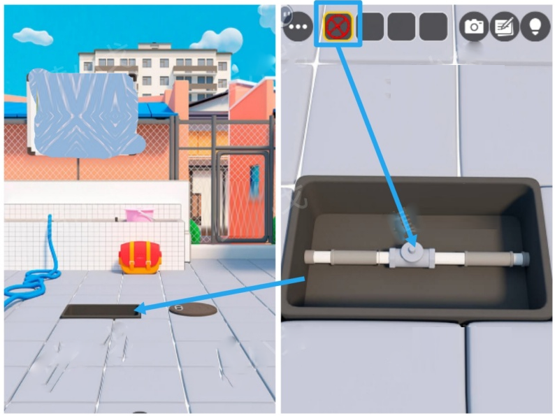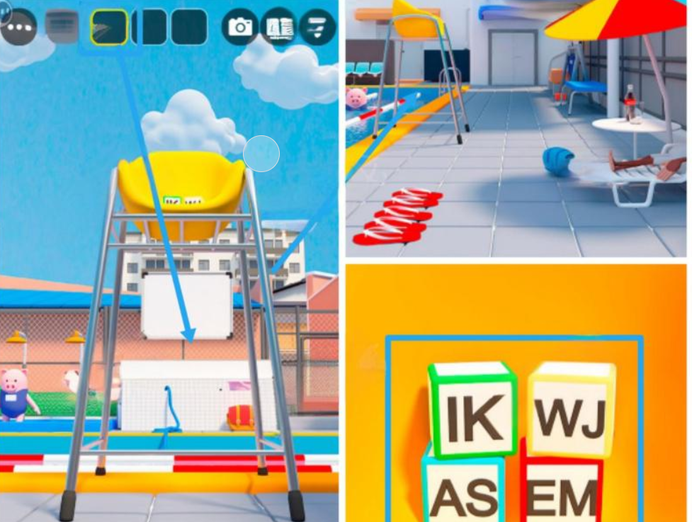 开启垃圾桶密码锁:垃圾桶上有密码锁,根据上面的颜色提示,结合之前在泳池场景右侧椅子书包上得到的颜色线索“上红下蓝,上粉下红,上橙下粉,上蓝下橙”来调整密码锁。假设垃圾桶密码锁颜色提示顺序为从左到右,那么对应的密码可能是“橙红蓝粉”(具体颜色对应需根据游戏内实际情况,若垃圾桶颜色提示有特定顺序规则,按照规则结合泳池书包颜色线索推导),打开垃圾桶后获得【钩子】。
