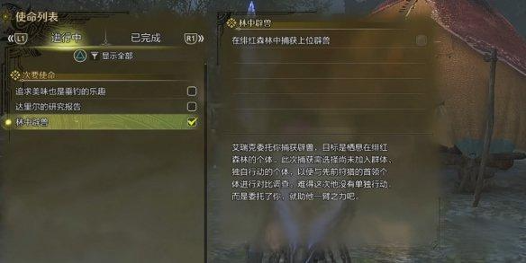 1. 打开怪物猎人荒野游戏,在使命信息中选取并完成林中辟兽任务。