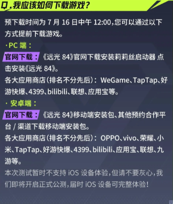 《远光84》将于7月18日12点开启“领航双端不限号终测”。