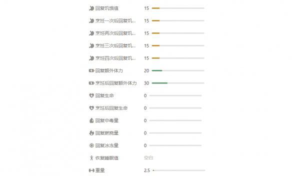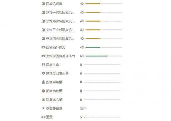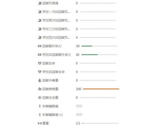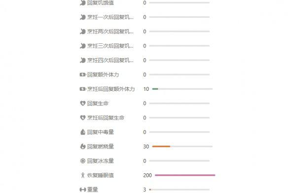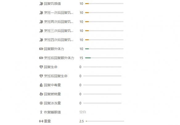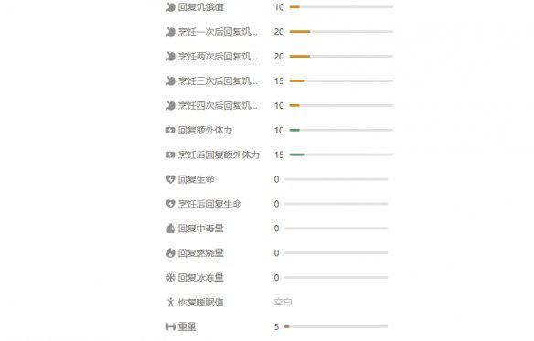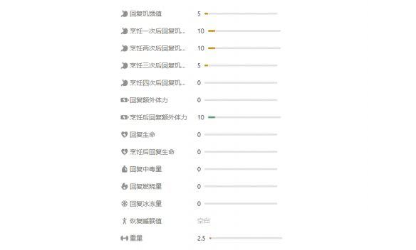 效果:烹饪食用提高体力的恢复数值
