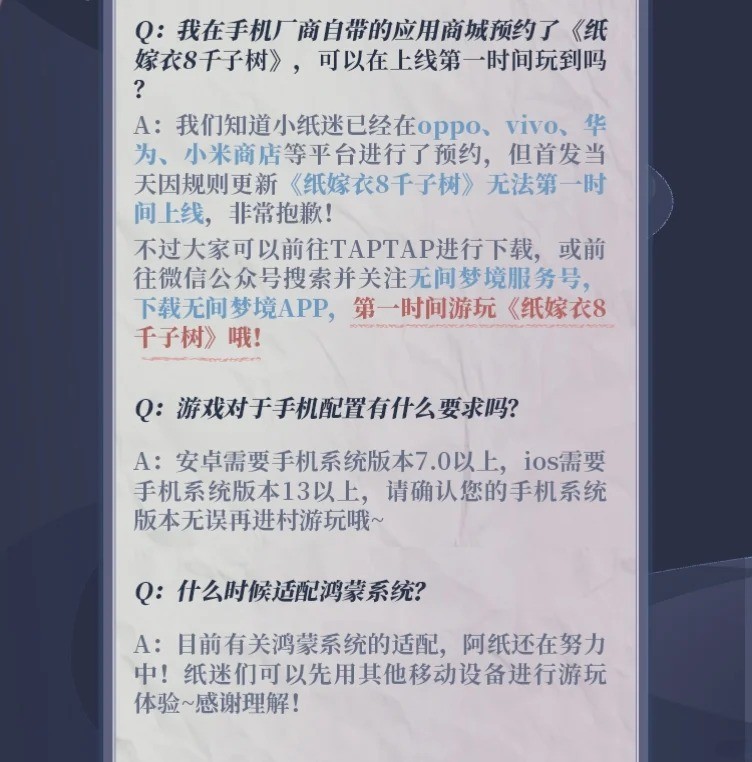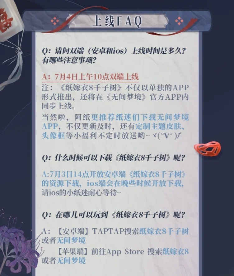 时间:7月3日14:00安卓预下载(TapTap/无间梦境APP),iOS稍晚。