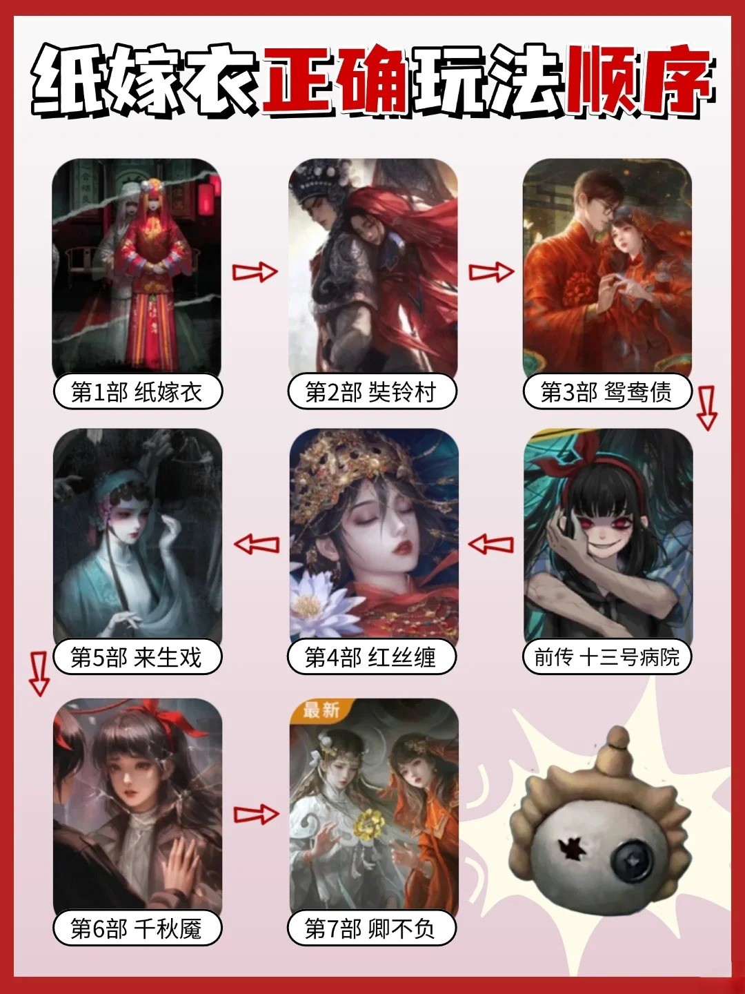 1. 纸嫁衣1 → 2. 奘铃村 → 3. 鸳鸯债 → 4. 红丝缠 → 5. 来生戏 → 6.前传:十三号病院 → 7. 千秋魇 → 8. 卿不负 → 最新:千子树