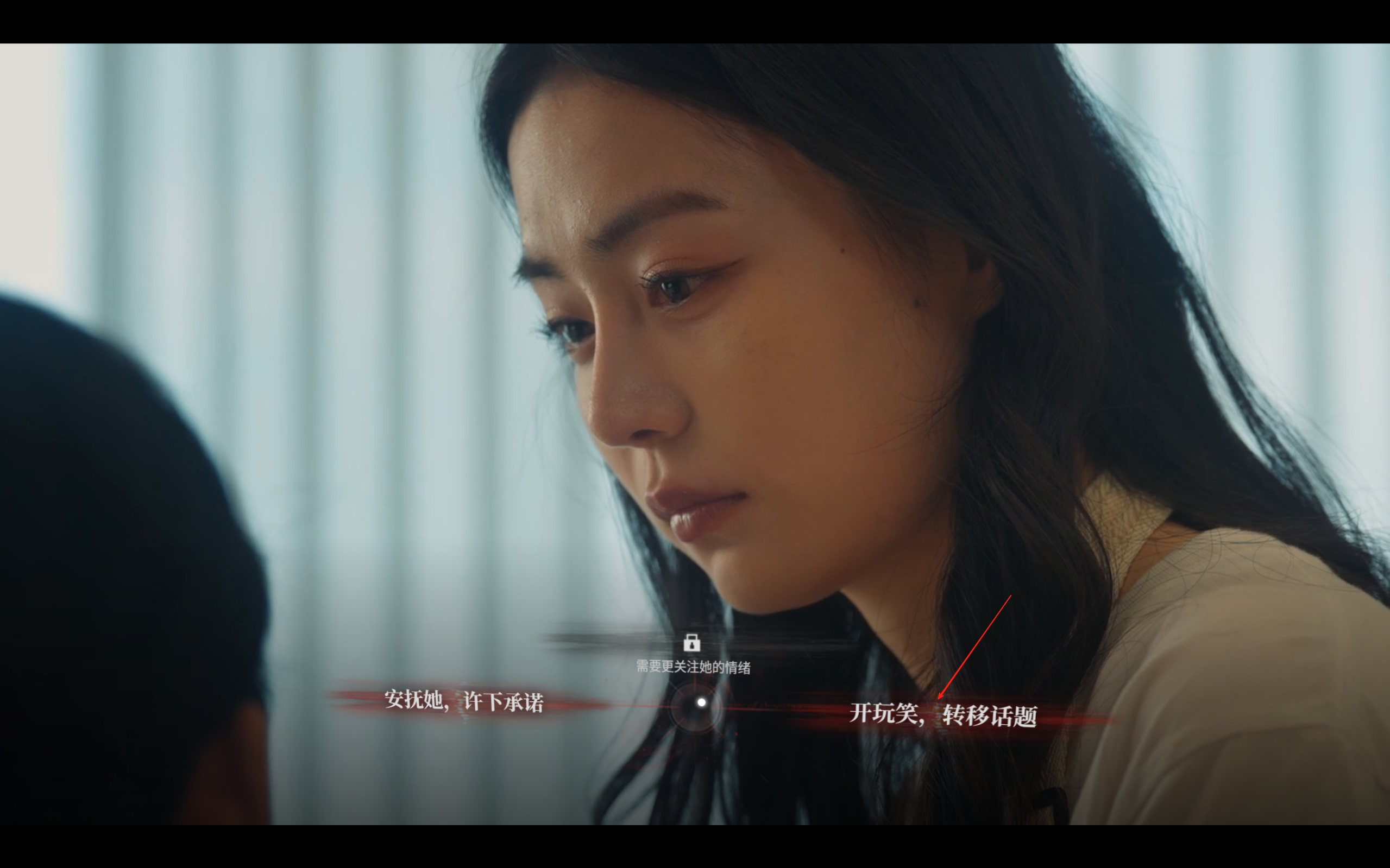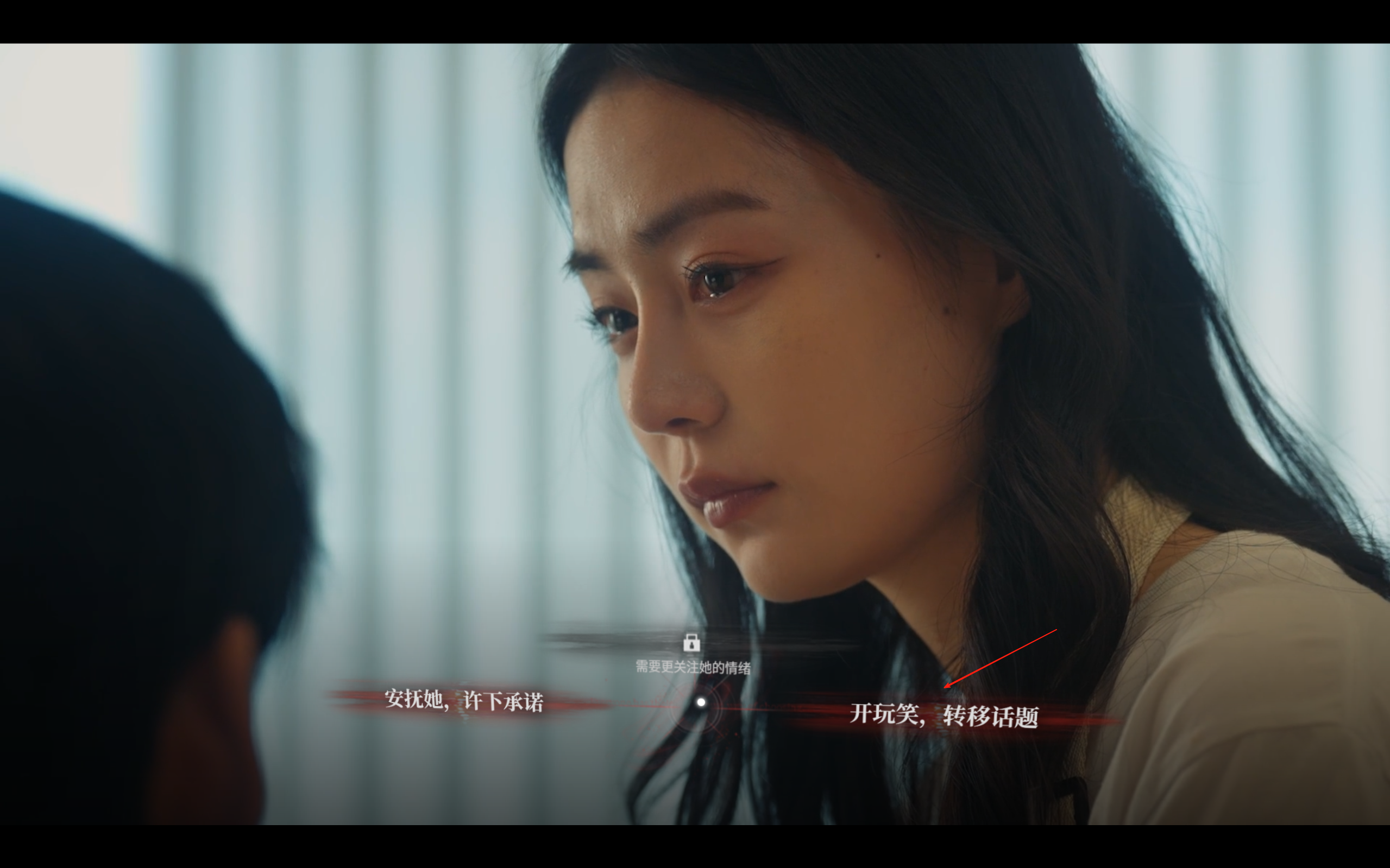 八、男主回来到之后,发现屋里一片狼藉,来到陈欣如面前,这里会弹出选项,选择“询问她,发生什么事”