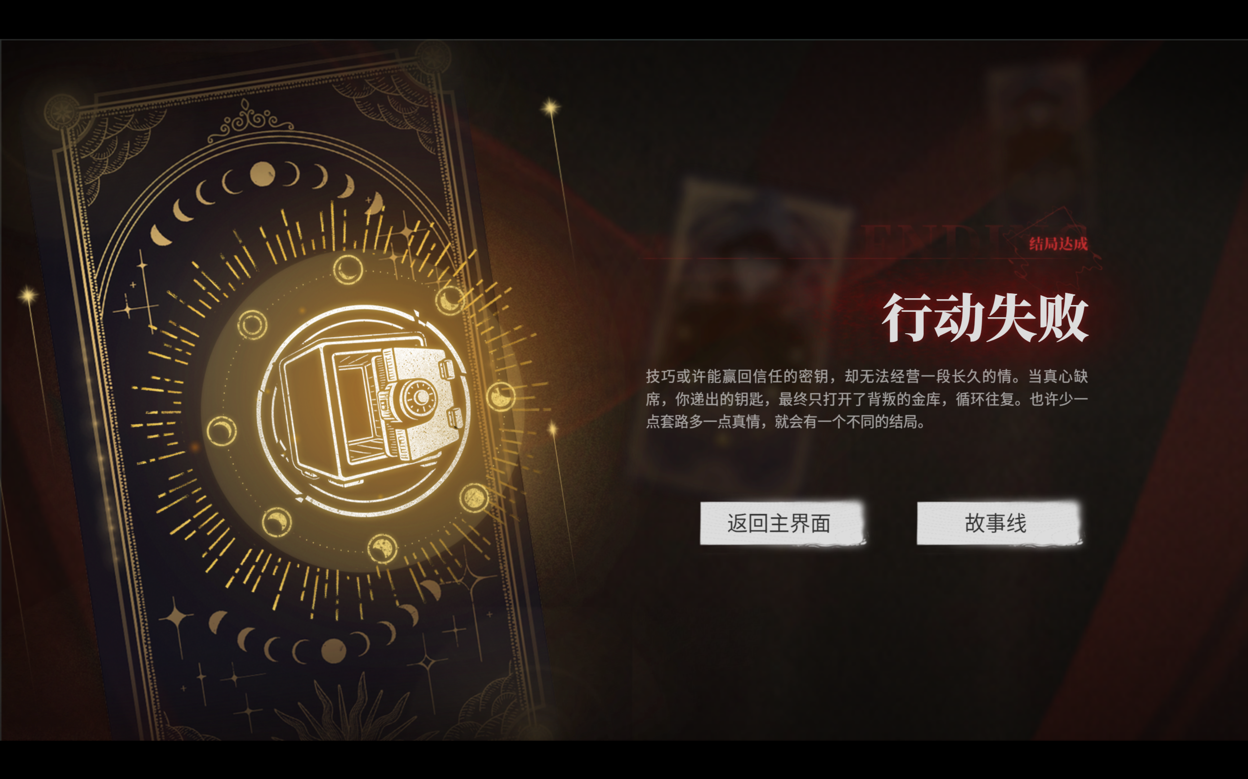 第三章的行动失败结局,是选择让两人的恋情关系不断疏远的选项,以至于让陈欣如并不是真的爱男主,加上最后一个选项的选项发生了争吵,才让男主第二次被捞。