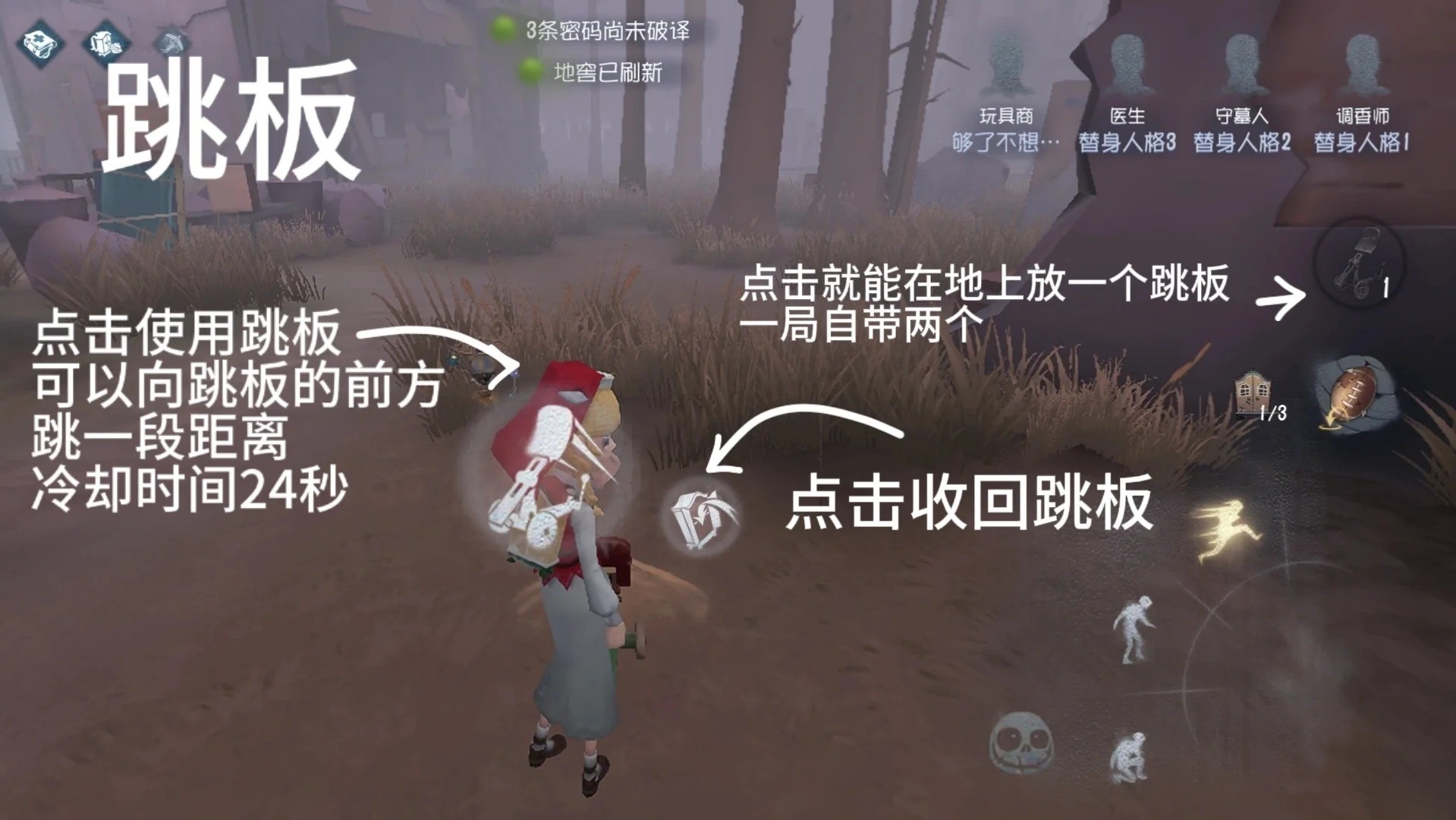 玩具商是第五人格求生者阵营中的支援型角色,她独特的跳板机制和道具共享能力,既能辅助队友转点,又能加速团队发育,但是很多玩家都不会使用玩具商的玩具,所以小编将详细解析玩具商的4大核心技能,包括跳板放置、滑翔技巧、道具投掷及摸箱加速,并附上实战进阶技巧,帮助你学会使用玩具商。