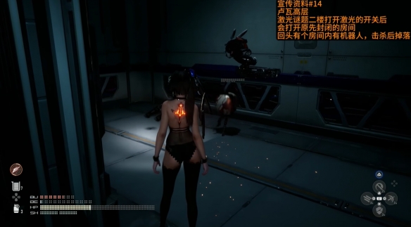 2、要沿着黄色的攀爬点向上攀爬,并且途中会有守卫机器人,需要击败他们