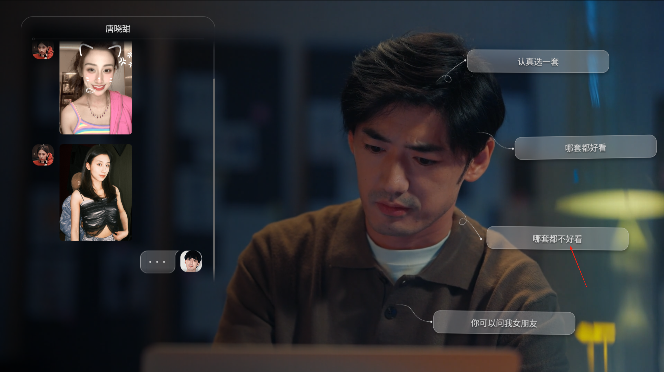 十二、唐晓甜让男主帮忙选衣服,这里选择“哪套都不好看”