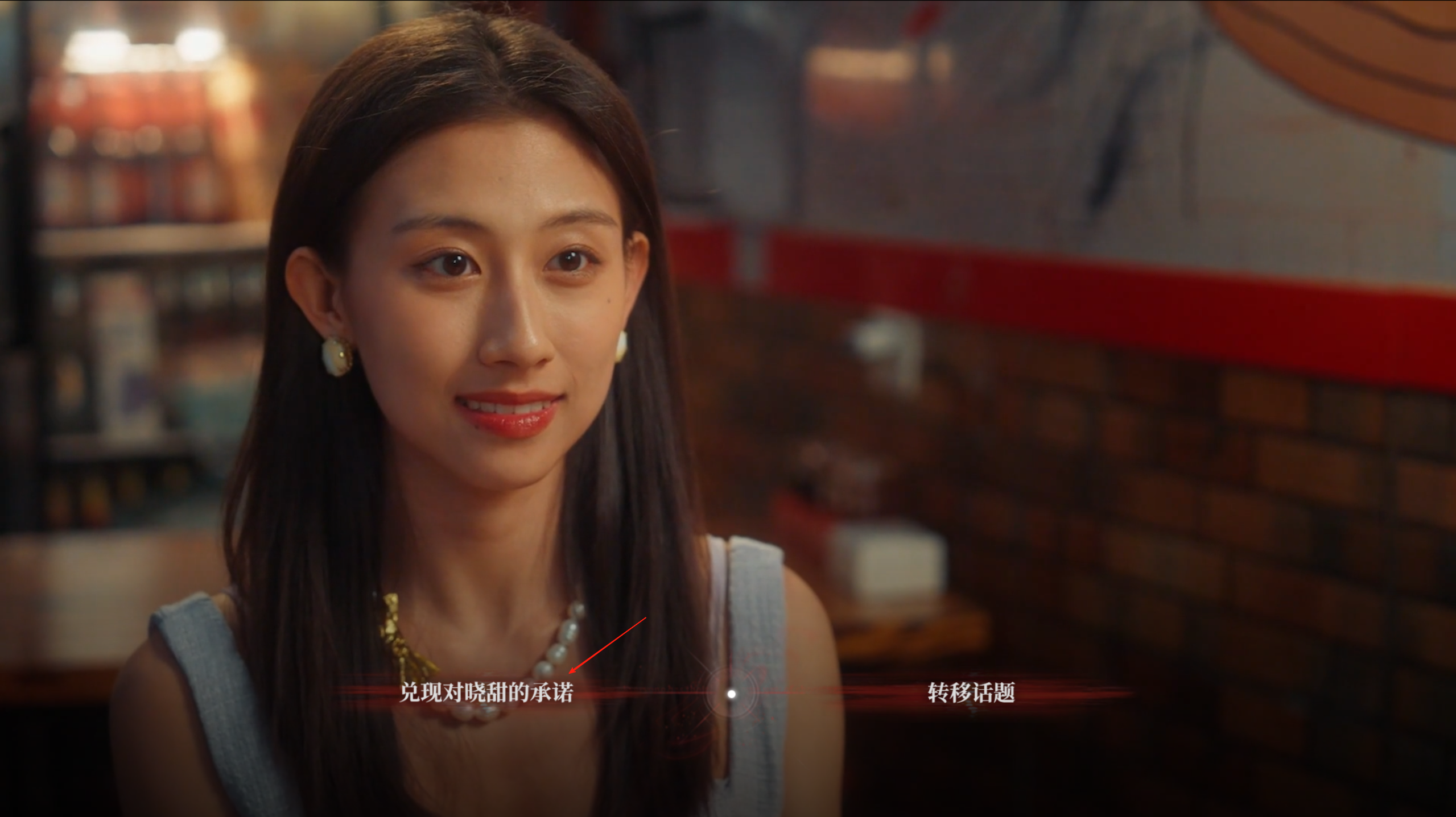 十六、来到另一家餐厅,对话剧情开始,先是有关电影的对话,这里选择“兑现晓甜的承诺”(ps:在公司团建剧情的时候,如果没有答应她帮她介绍,那么这个选项无法选择)