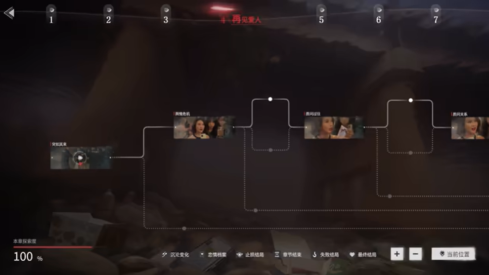 若选择“帮公司”后不选择“最特别”进入失败结局,选择“最特别”后若选择“伤口”再选择“想挽救她”也是失败结局,即如果开始选择了“帮公司”则之后不能有“降”出现