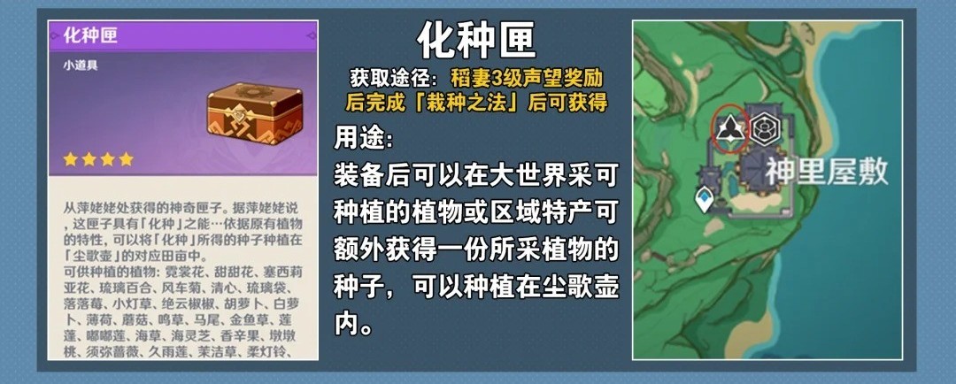 获取途径:稻妻3级声望 + 完成「栽种之法」。