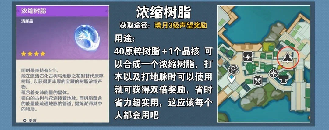 用途:40树脂+1晶核合成,地脉/秘境双倍奖励(上限5个)。