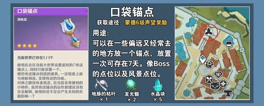 用途:自定义传送点(持续7天),适合刷BOSS/偏远资源点。