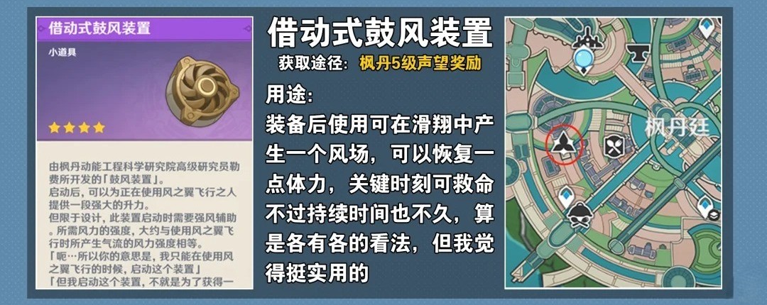 用途:滑翔时生成风场,恢复体力(救急用)。