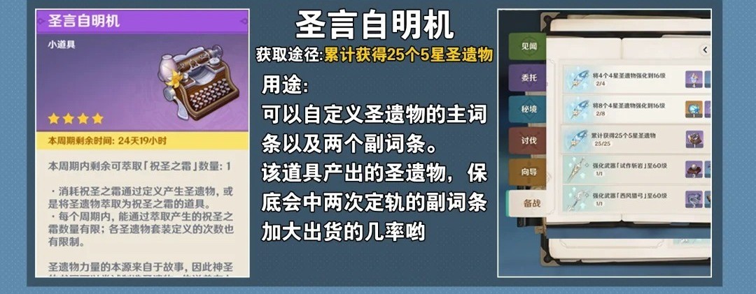 用途:自定义圣遗物主词条+2副词条,提高毕业概率。