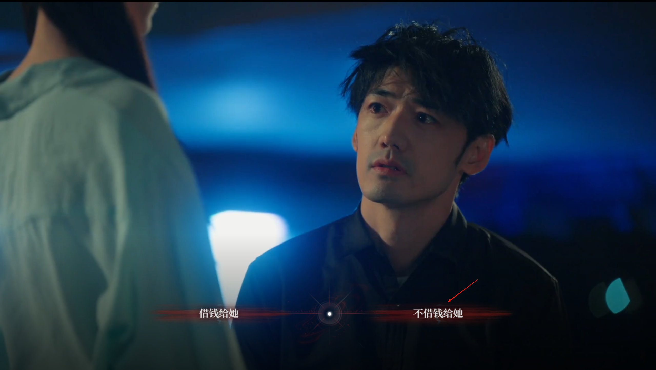 在吴宇伦对陈欣欣的沉沦值下降到一定程度之后,后续在桥上的对话才能解锁不借钱给她,否则无法选择,你只能选择借钱,跟随主线剧情来走。