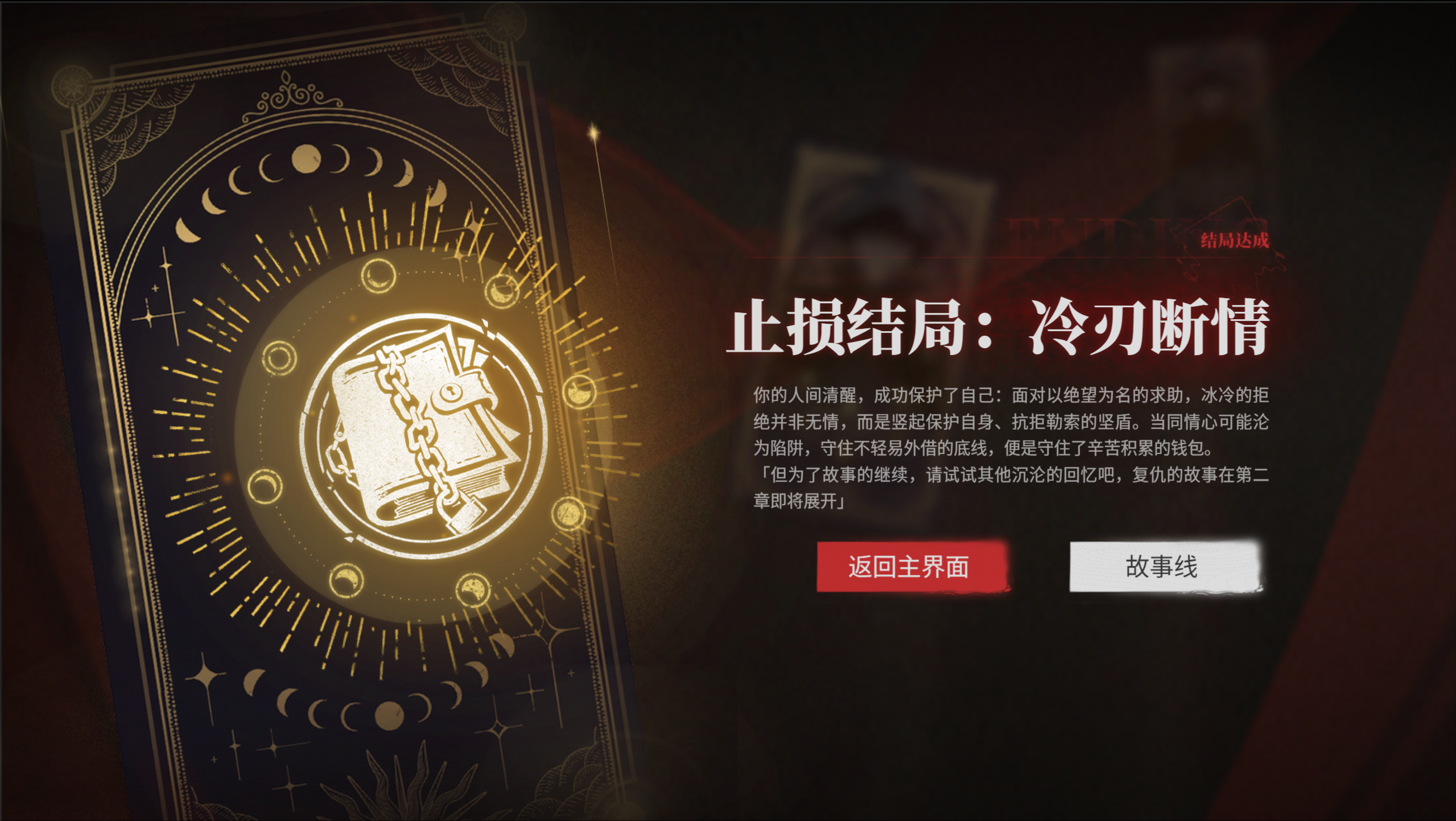 在捞女游戏中,故事大致走向就是男主吴宇伦像小胖回忆因为第一章在自己出入社会之时陷入了女主陈欣欣的捞女计谋,从而被骗钱以展开后续的故事,但是在第一章中也会有及时止损的选项出现,会让剧情出现分支结局,下面本篇将介绍捞女游戏中的止损结局之一——冷刃断情结局怎么解锁