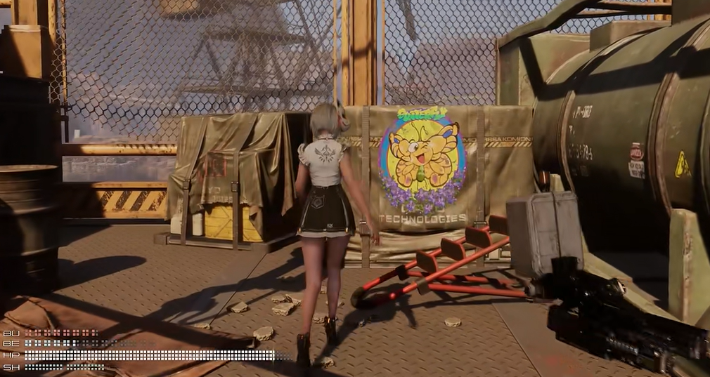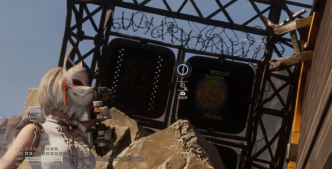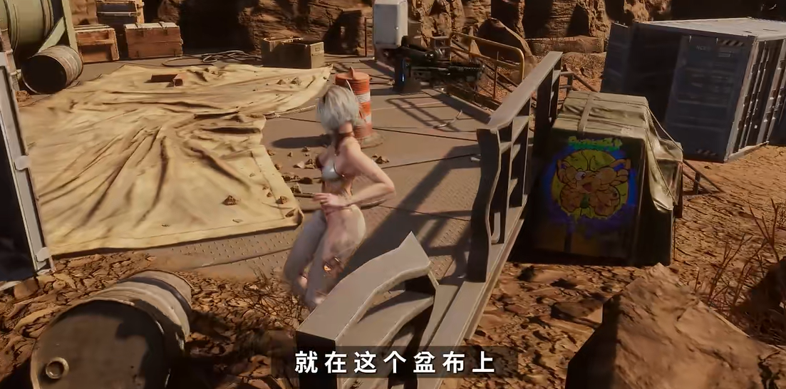 在废品平原中部。圆球建筑右边倒塌的架子上。
