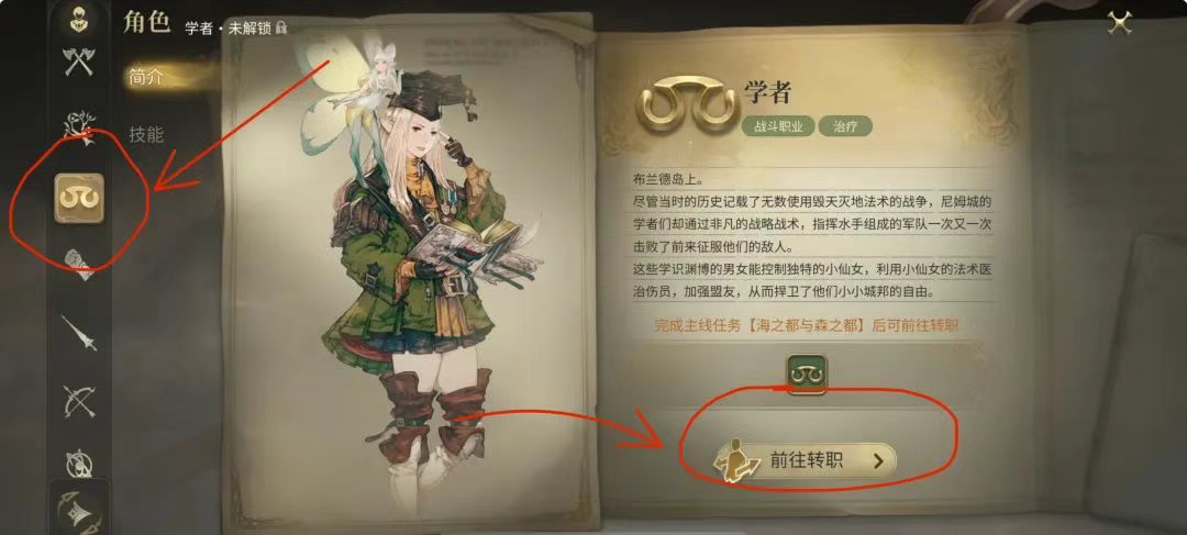 10级主线任务完成后,点击角色图标,点击左边想转的职业,再点击前往转职,接受转职任务,跳转到任务附近,点击任务图标跟随找到转职任务地点,对话后就能完成转职,非常简单!