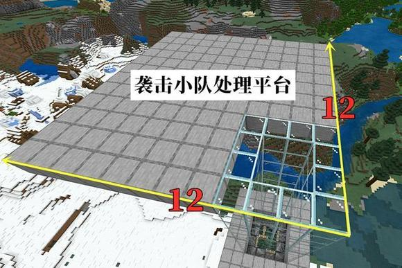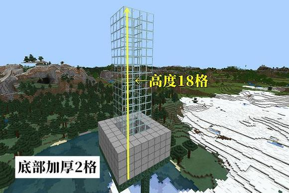 1、以掠夺者刷新点的坐标为起始位置,向上搭30格,首推脚手架,方便玩家攀爬,如果实在找不到竹子,可以选择树叶和藤蔓的搭配。