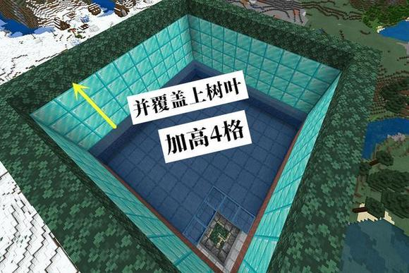 6、加高4格并覆盖上树叶,怪物运输装置便完成了。