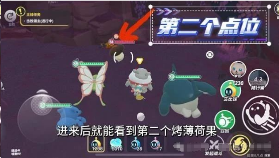 第二个刷新点位:接着我们用艾比把旁边的山洞砸开,进来后就能看到第二个烤薄荷果;