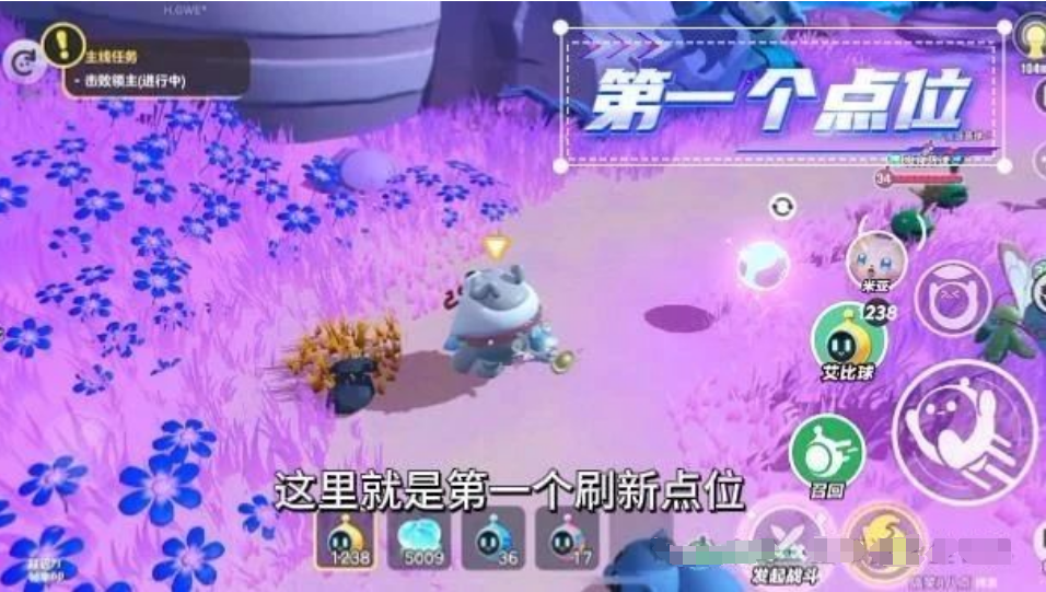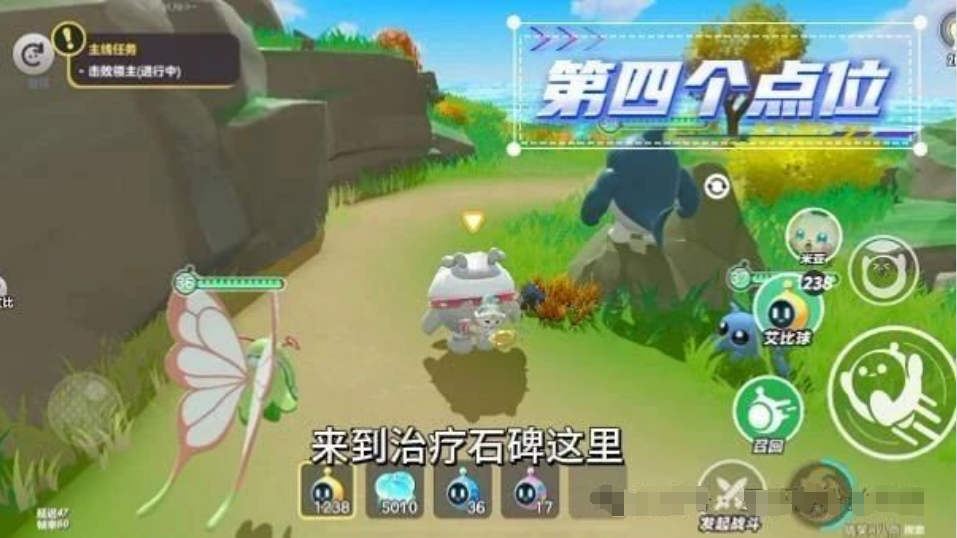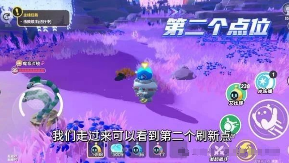 第一个刷新点位:来到瀑布前有治疗石碑的水池旁,这里就是第一个刷新点位;