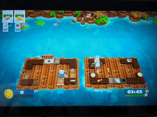 该主题下的菜品大多都是油炸物,像薯条和鸡块这种,玩家需要呆在竹筏上随着浪的转变完成菜品,这里要小心冲刺时候不要掉进水里了。这一主题的Tips是一定两个竹筏至少保证一个人在上面,不然很浪费时间。