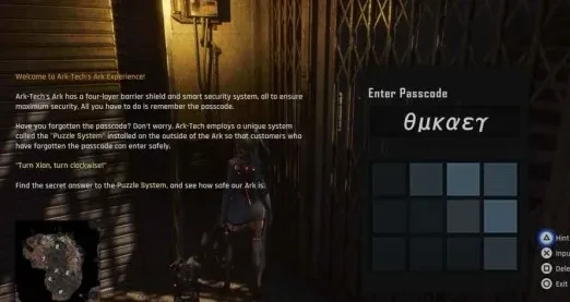 现在需要绕着希雍外围,逐一与6个蓝色控制台互动,每个控制台都会给出密码的一个字母。在找到全部的控制台之前,无法使用大门前的密码键盘。