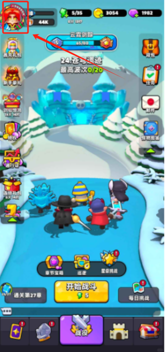 1、打开胡闹地牢游戏,点击左上角个人头像