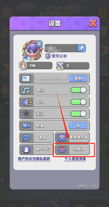 3、在弹出的菜单中选择兑换码,输入正确兑换码就能兑换成功