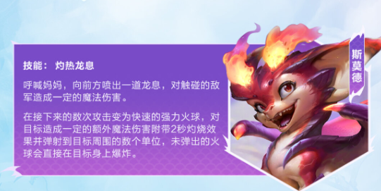 斯莫德(炼狱龙):技能附带灼烧效果,持续消耗敌人生命值。