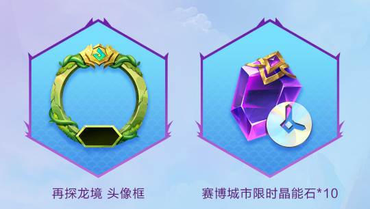 6月12日至6月19日期间完成任务,可免费领取「再探龙境」头像框及赛博城市限时晶能石